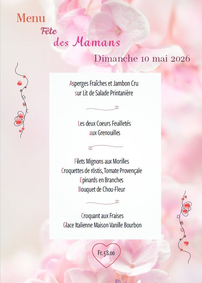Proposition d'un menu du mois servi du lundi au samedi midi.